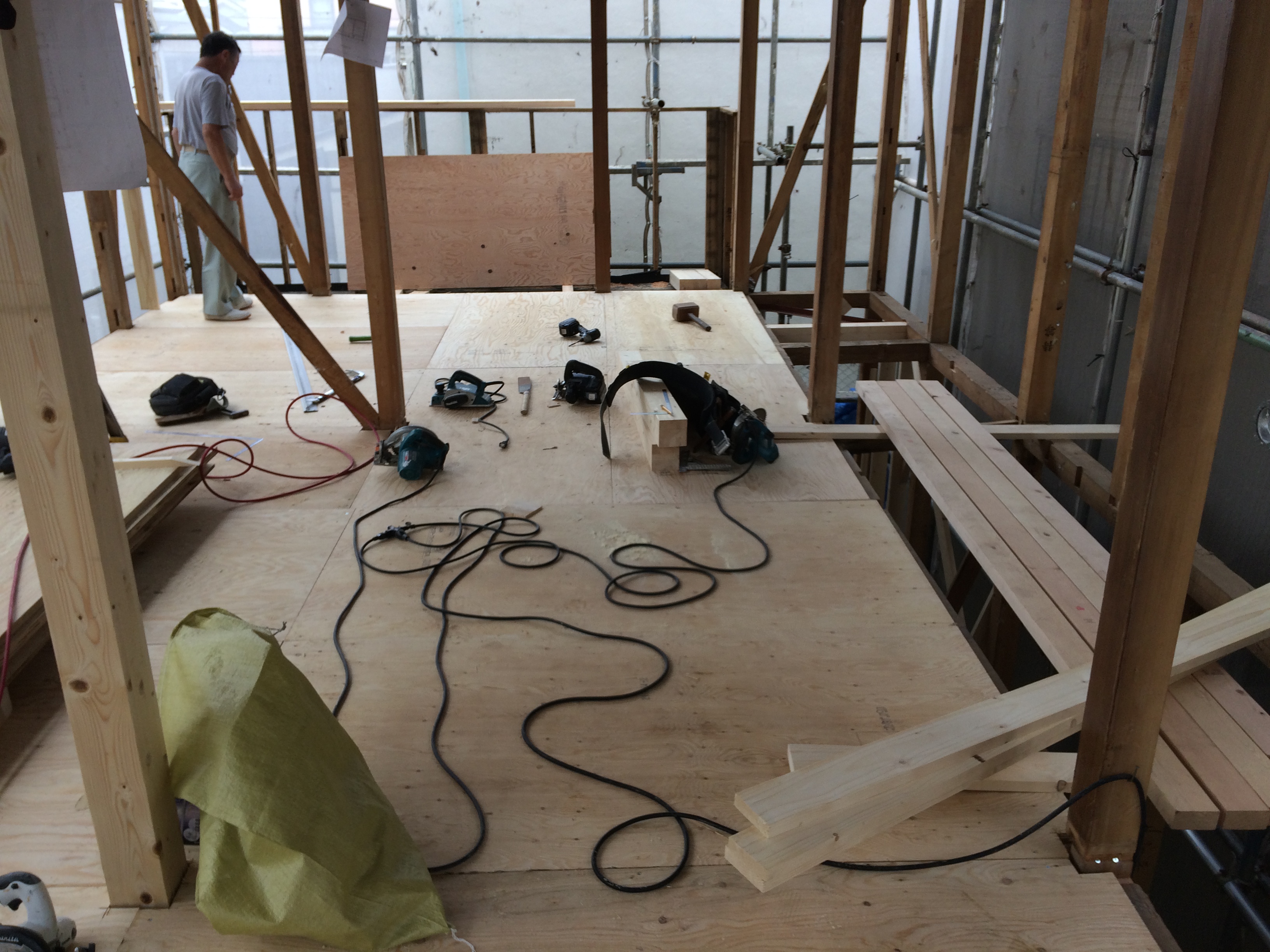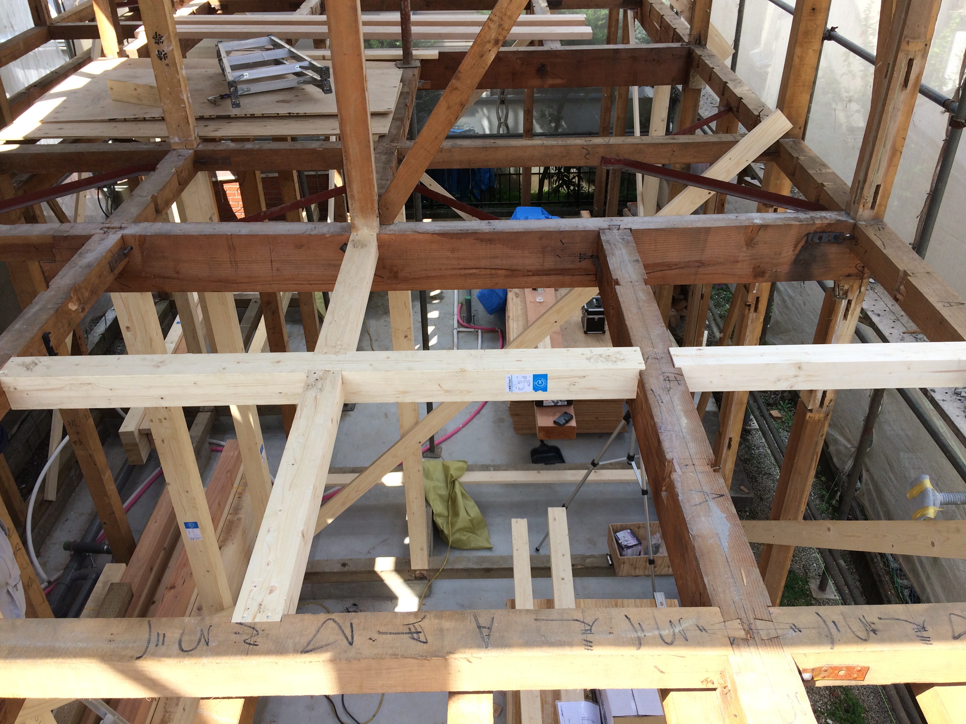 大田区の耐震補強補助の中間検査も終わり、大工工事が開始いたしました。