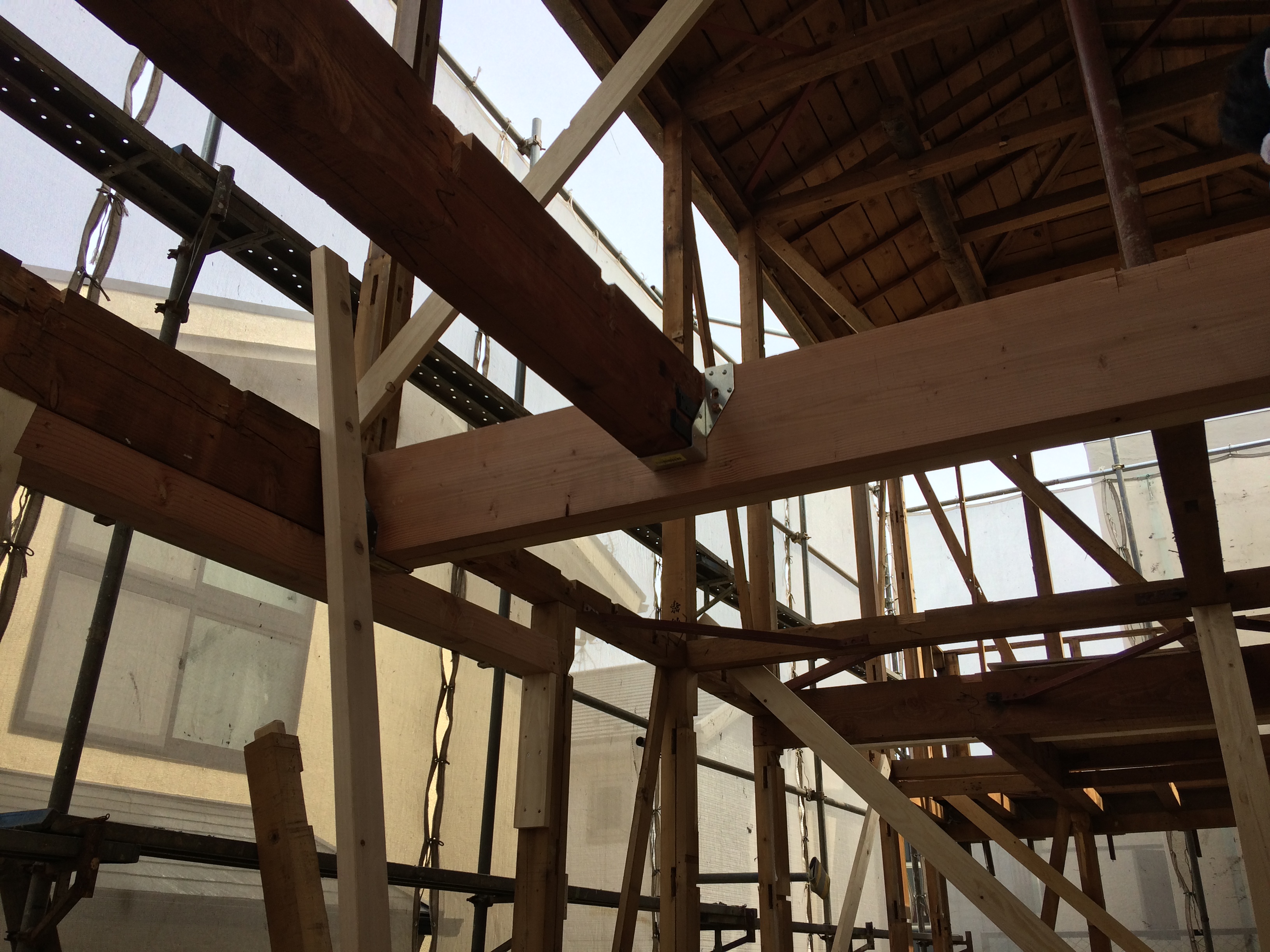 - 金物取付施工中。