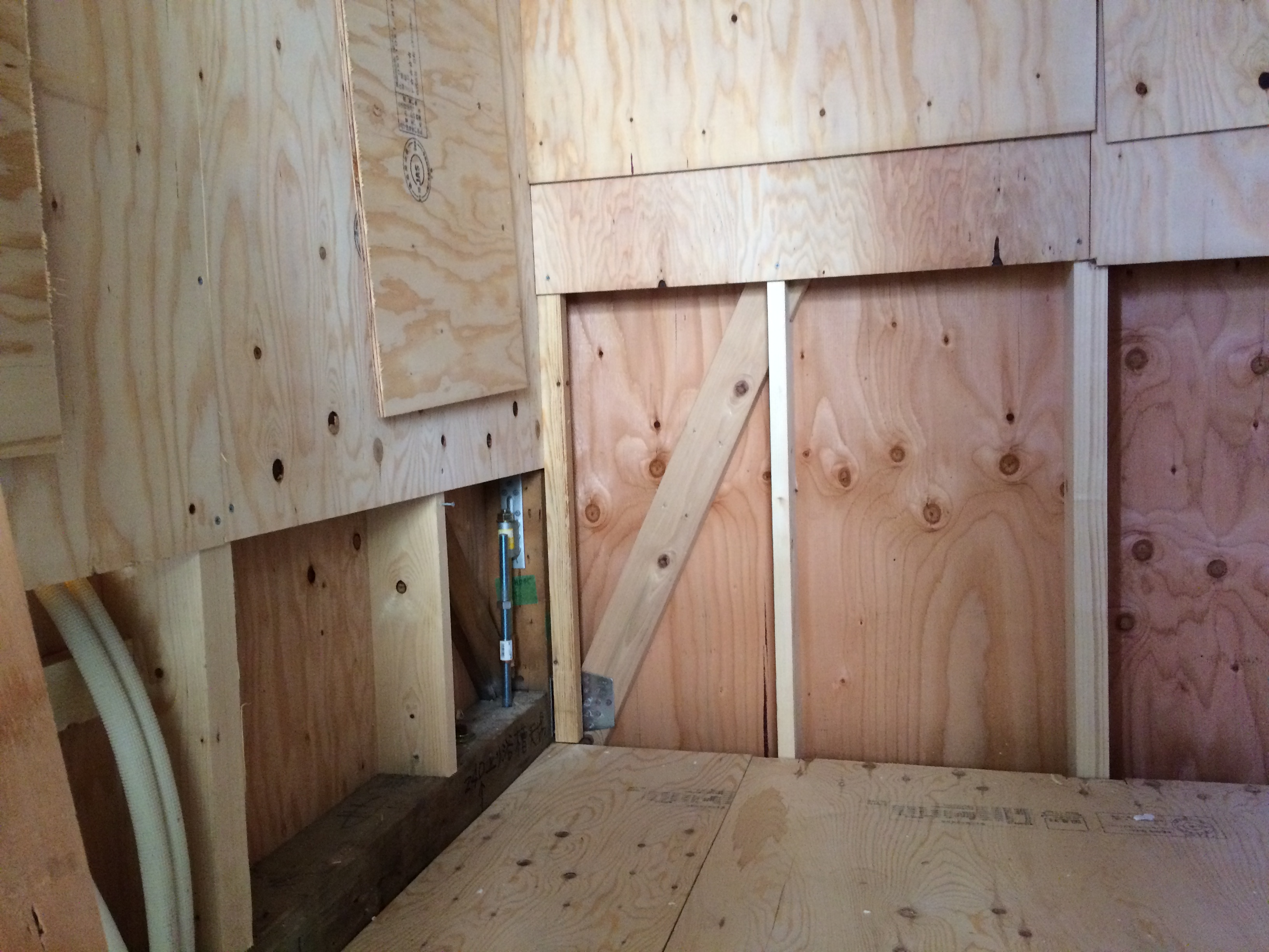 外壁・床の構造用合板と金物補強が終わりました。
