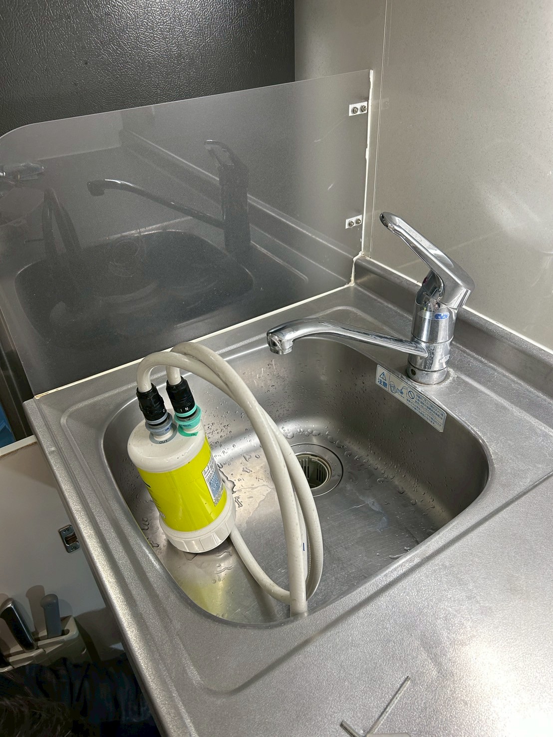 今回、取付た浄水器一体型蛇口はシャワー切り替え機能がついており、使用してみてわかったことなのですが、シンクにあたっても水撥ねがしないという事が分かりました。洗い物をするときでも、ほぼ水撥ねすることがない事に驚きました。