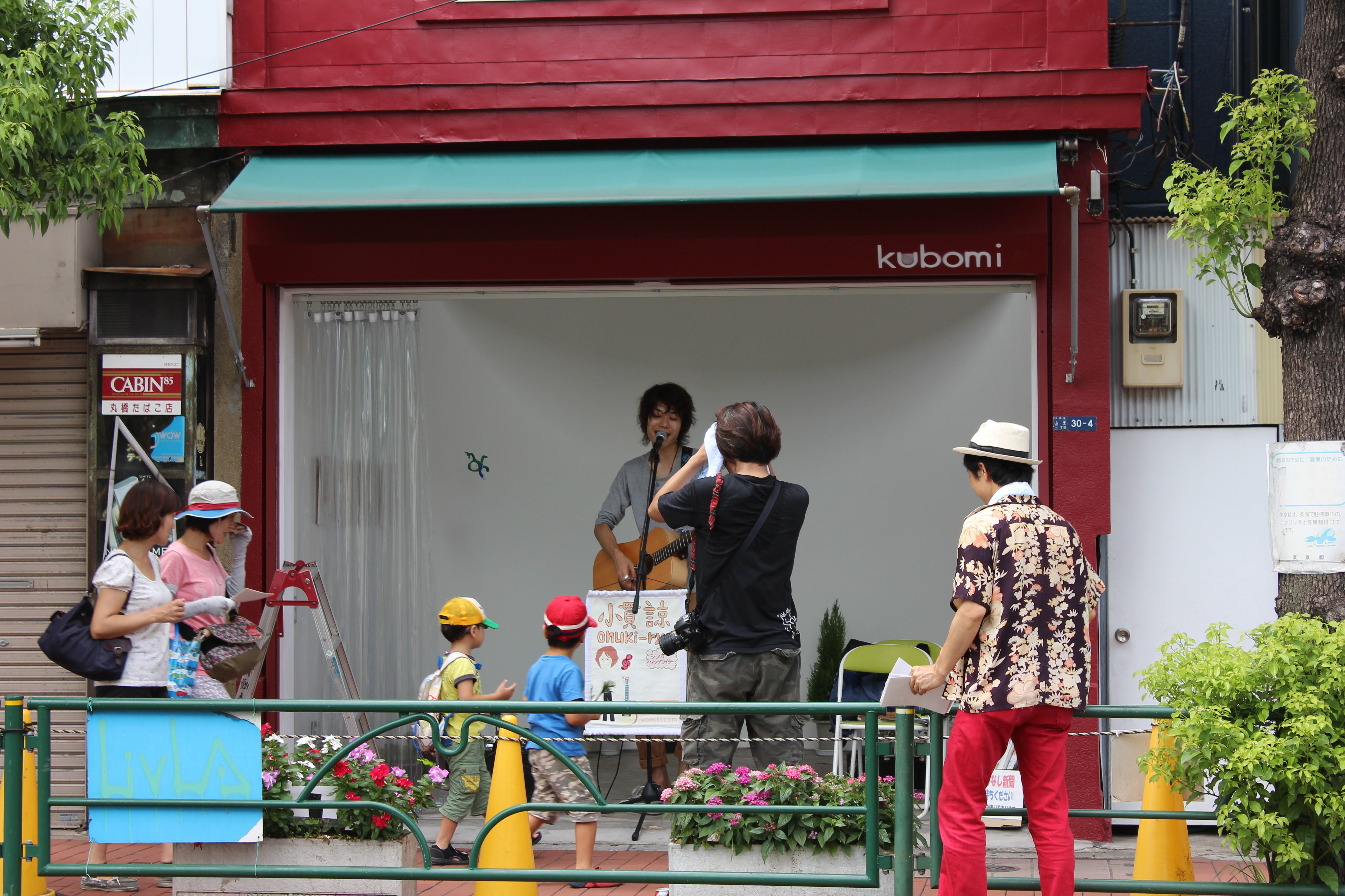 昨年6月に石巻マルシェ主催による“kubomi”と“アキナイ山王亭”で若手ミュージシャンが大森街中コンサートを行い、石巻のアンテナショップ『石巻マルシェ』をもりあげました。