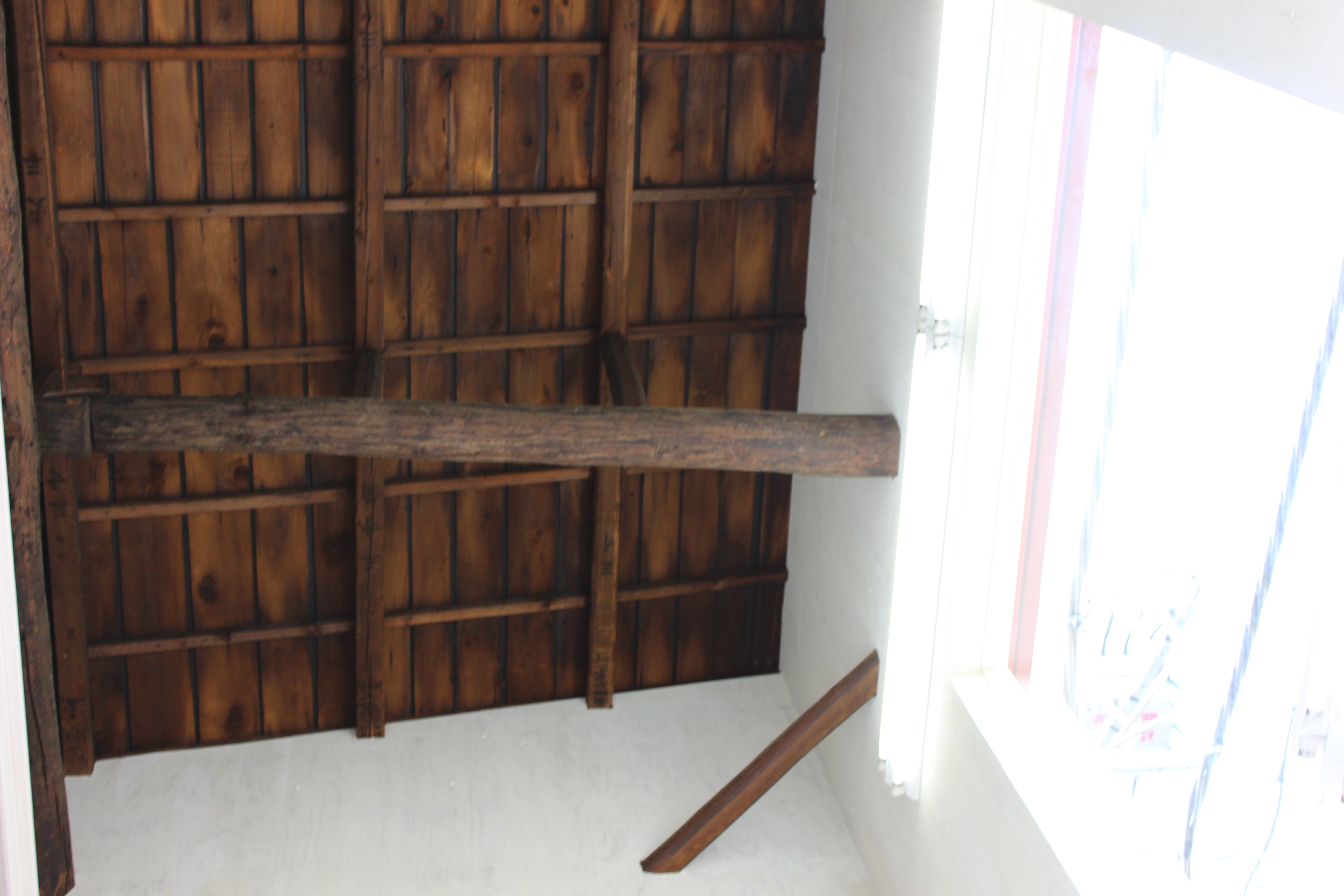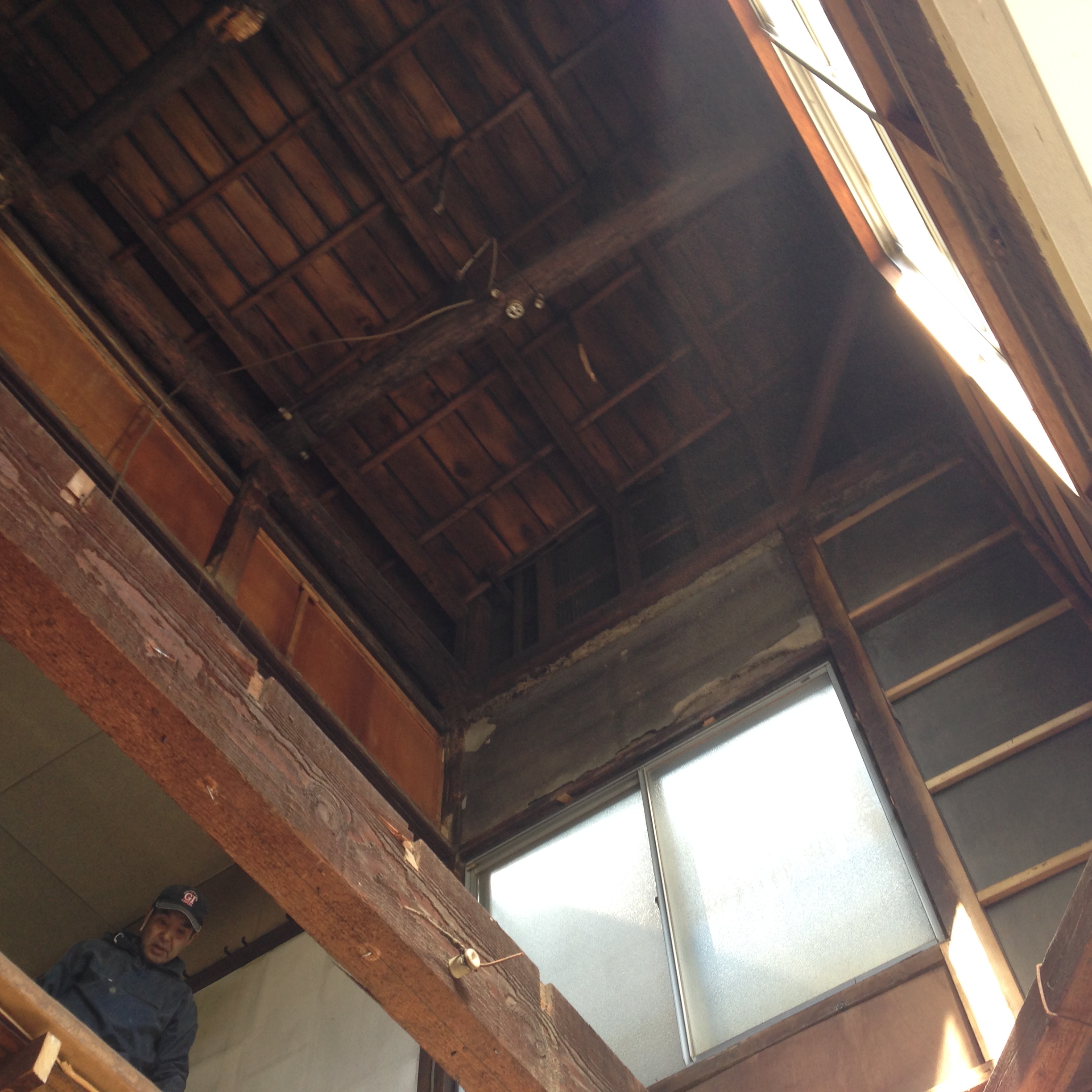 〈AFTER〉 手前5.5帖を吹き抜けとし既存の梁や屋根裏をそのまま建物の魅力のひとつとして生かしました。外観は山王の街並みに合うようなモダンでいて品のあるベンガラ色としました。