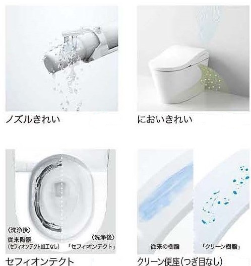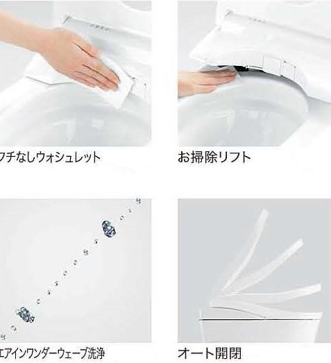 現在では一般世帯での普及率が80%を超えている「温水洗浄便座」をはじめとして、「自動脱臭機能」や、「抗菌機能」「人を感知すると自動でフタが開く機能」「トイレの自動洗浄機能」など、衛生的な機能も次々と開発され、海外では、今でもあまり見られない先進的なトイレとなっています。