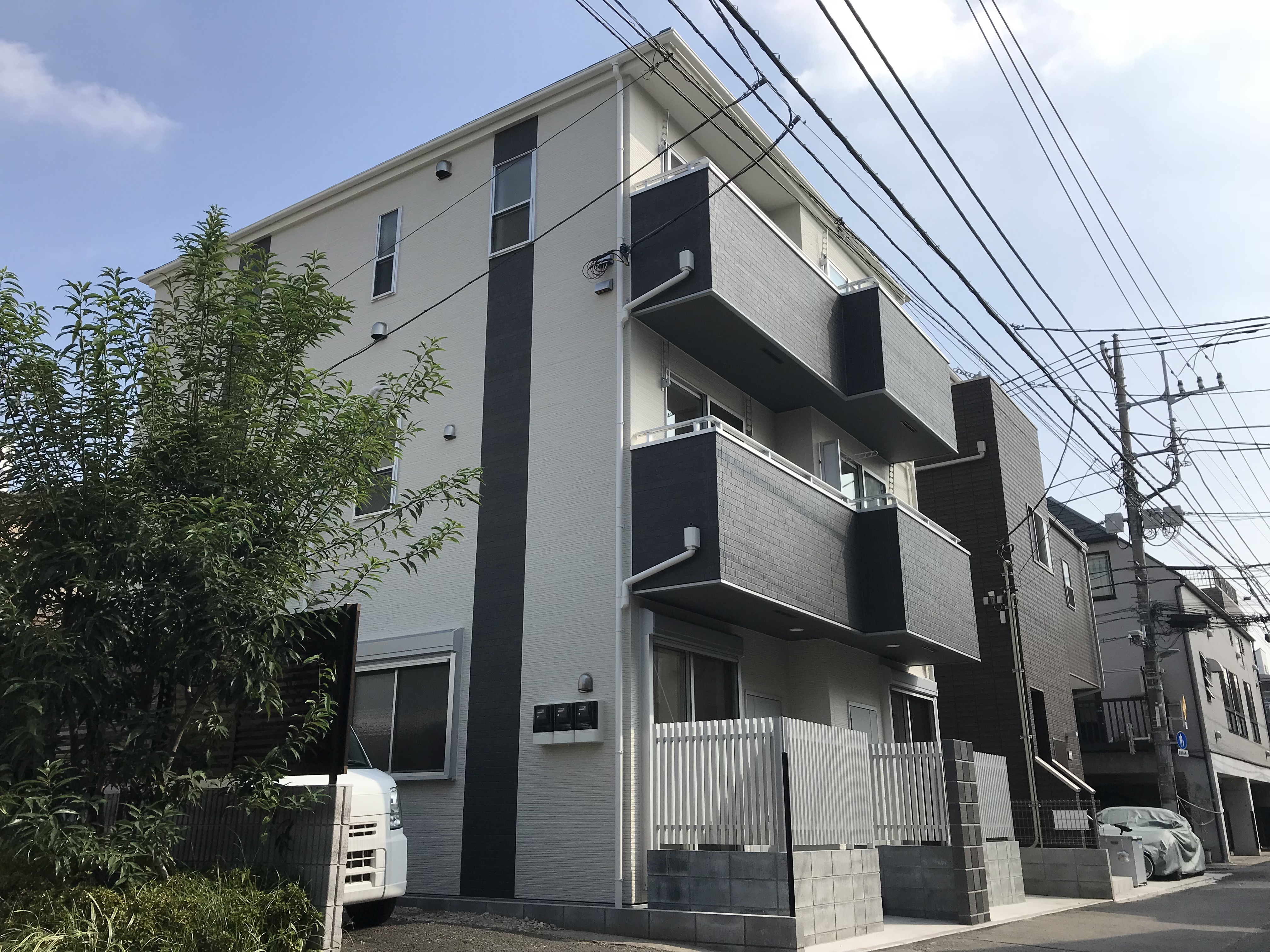 木造3階建て準耐火構造で1階ワンルーム及び1階~2階メゾネットで2LDK、そして2階~3階が3LDKでオーナーの住居となります。オーナーは1階から外階段で2階の玄関より入室いたします。天気の影響で心配しましたが、工程通り工事が進みお客様も予定通り引越いたしました。