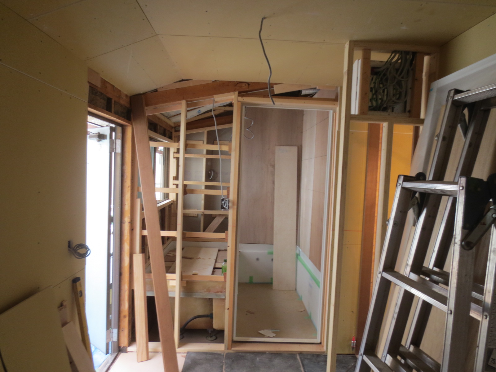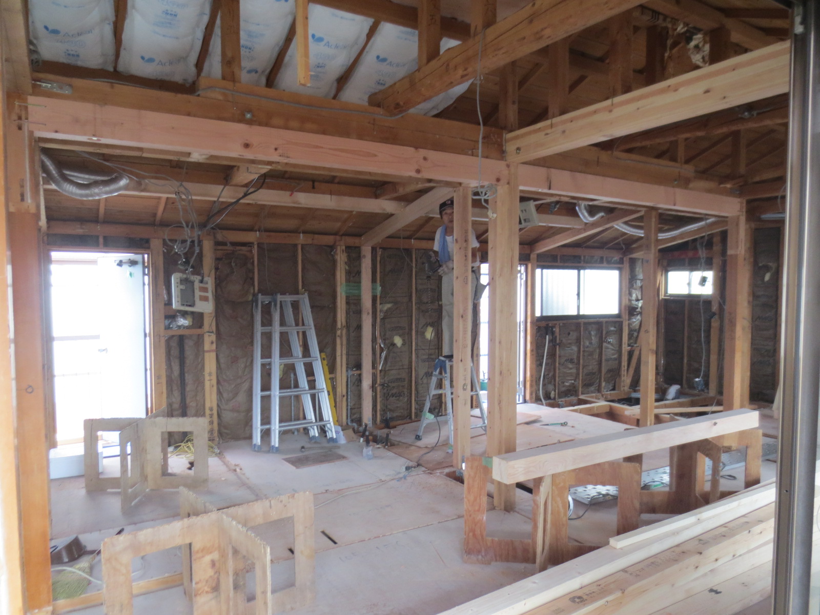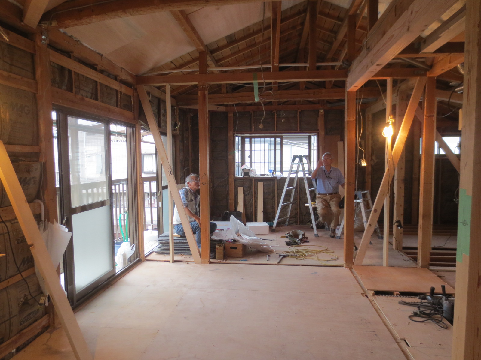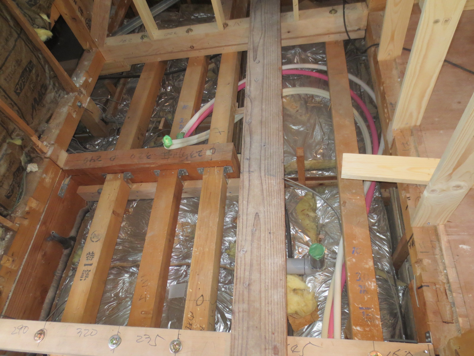 さて、今回はご成約頂いている中から3階建て建物の3階木造部分のフルリフォーム現場をご紹介致します。リフォーム前は2戸の賃貸住宅となっておりましたが、ご家族がお住まいになるという事で、一旦スケルトンにしてからの工事となりました。