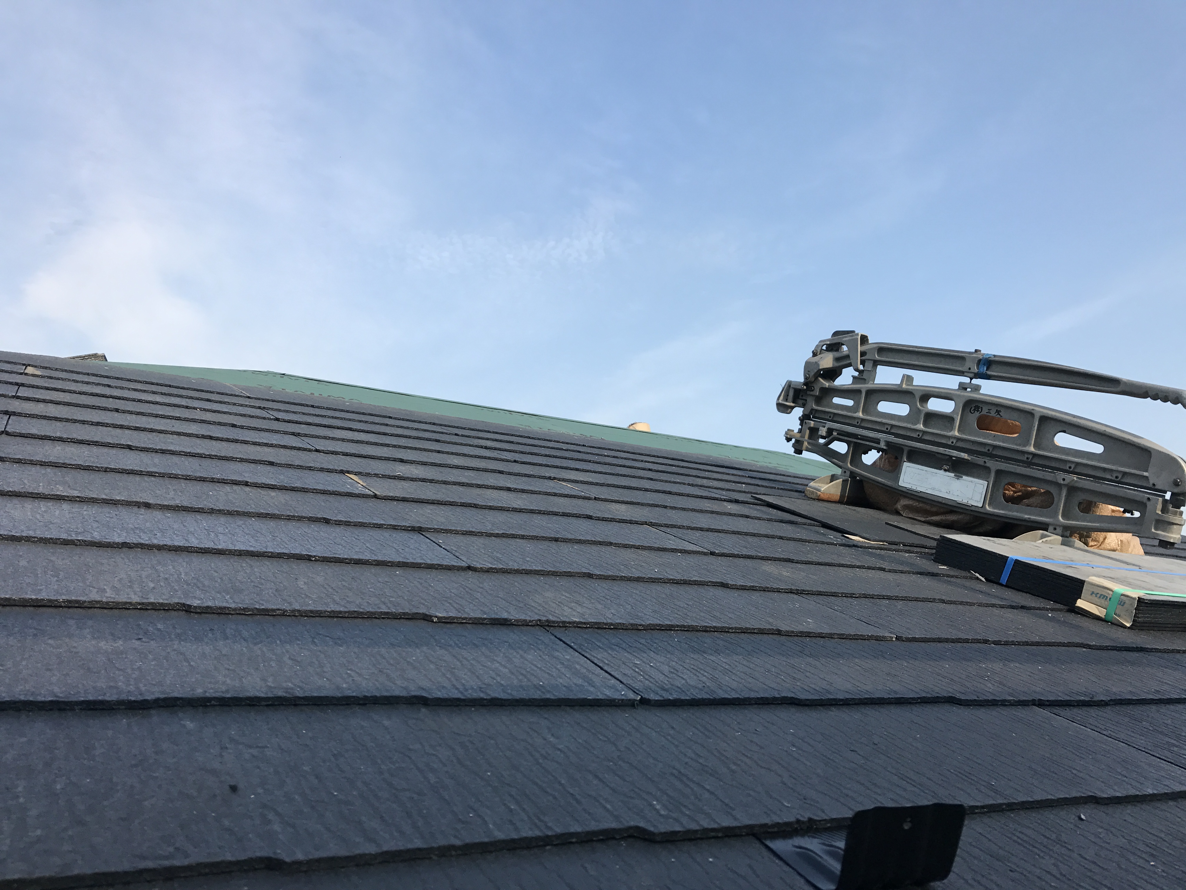 屋根材はケミュー社製のコロニアルです。ケミュー社とは屋根材メーカーのパナソニック社とクボタ社が統合した会社です。