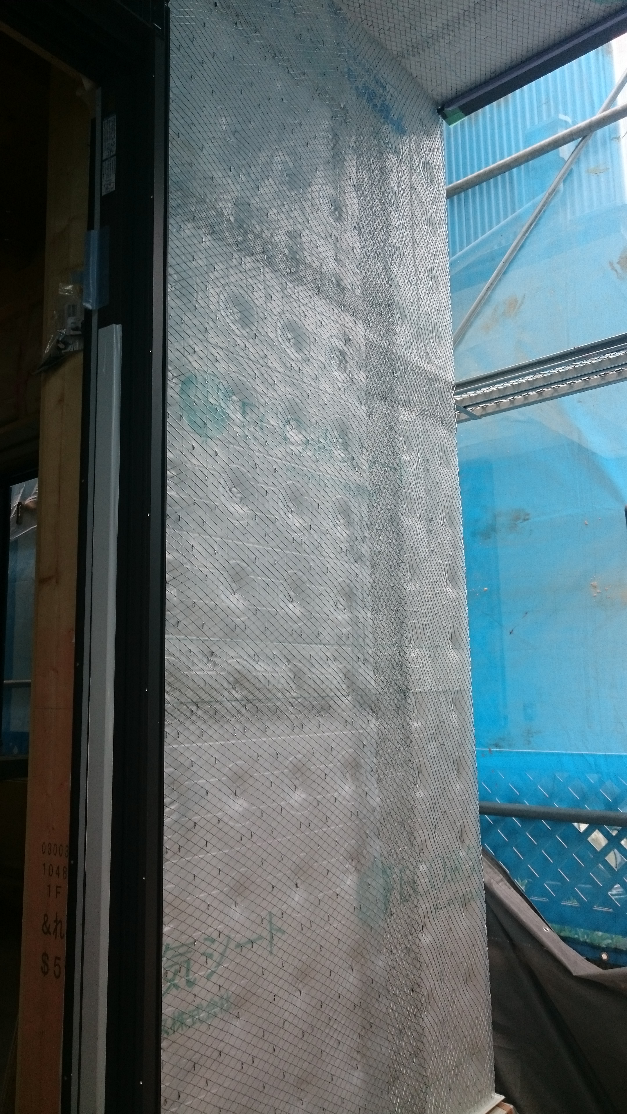 さらに漆喰塗りの下地、モルタル塗りの作業となります。