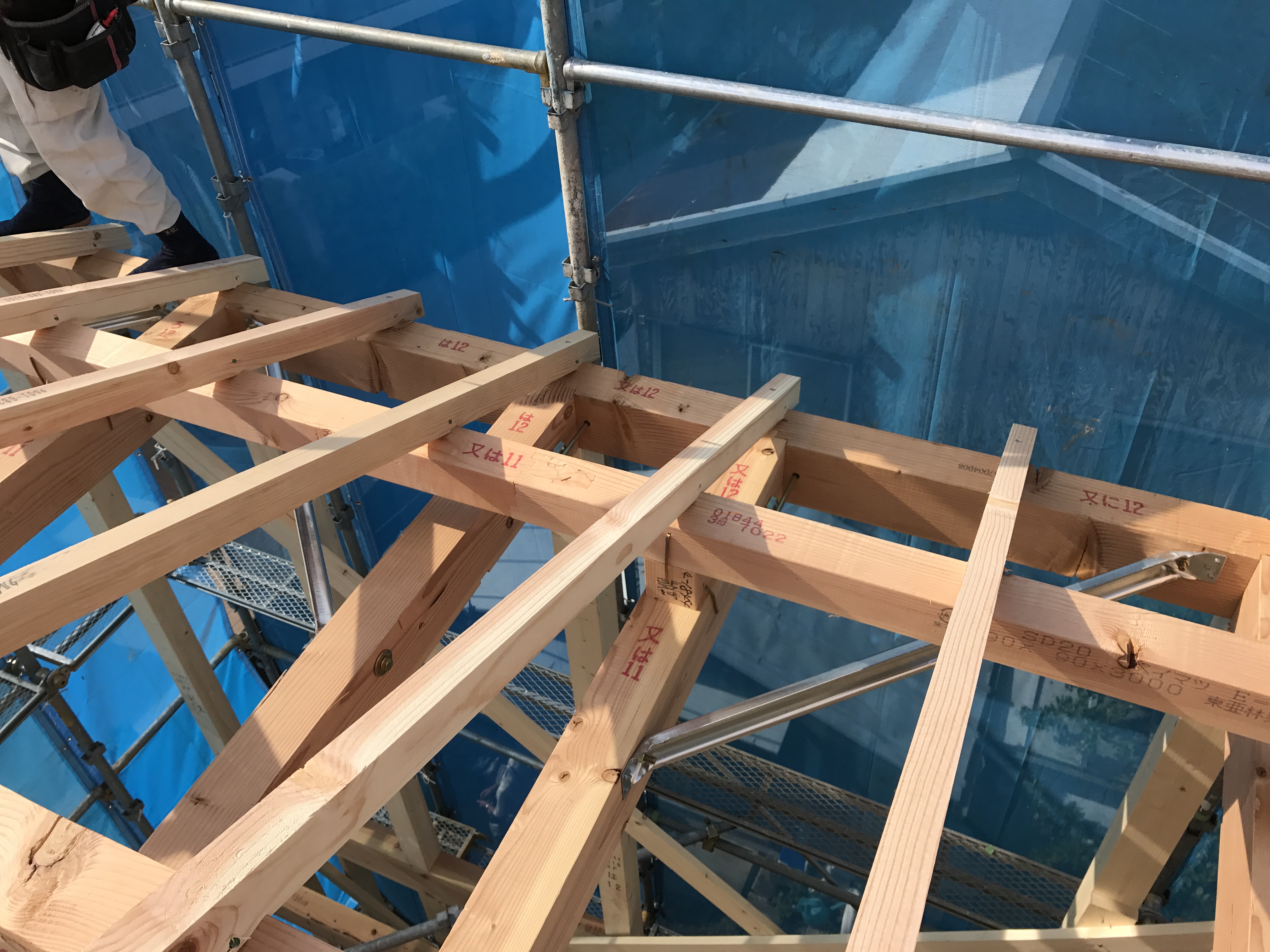 当日は屋根野部材である垂木まで設置し、幣串を小屋裏に収め作業修了となりました。
