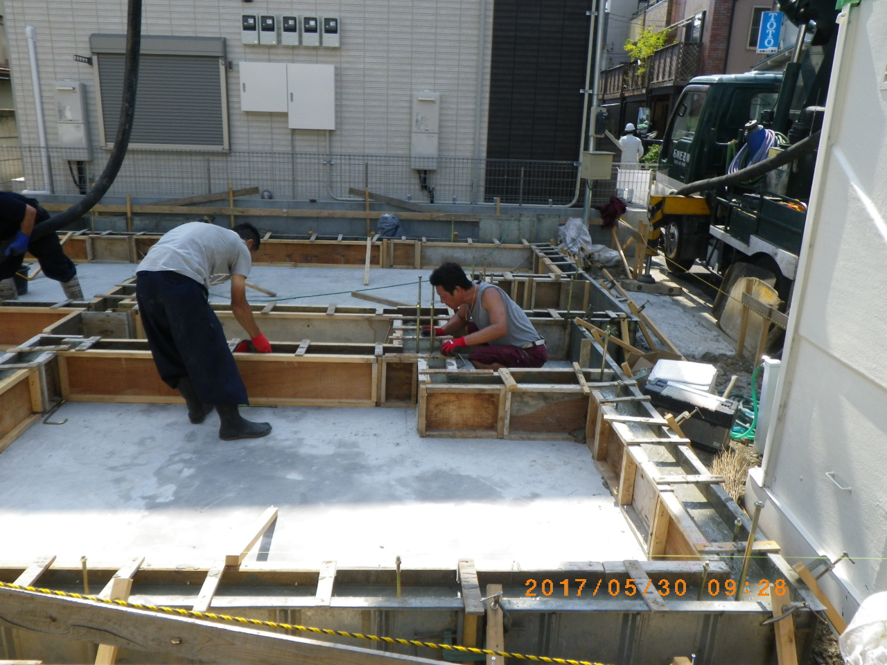 地盤改良工事のあと基礎工事となりますが、今回はベタ基礎の採用となります。