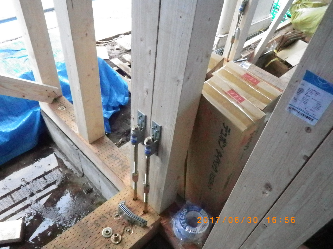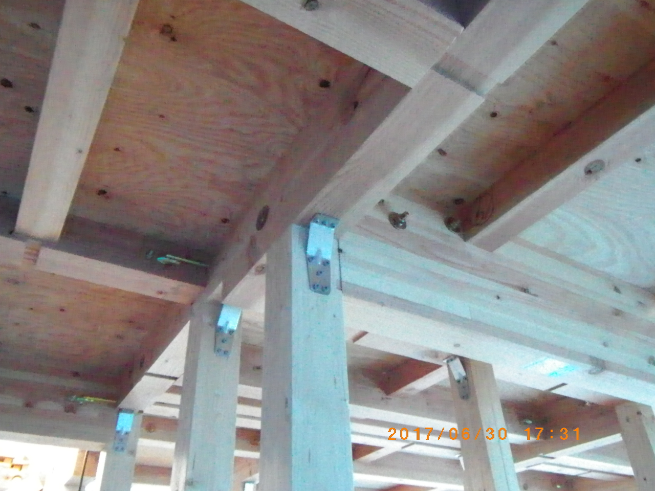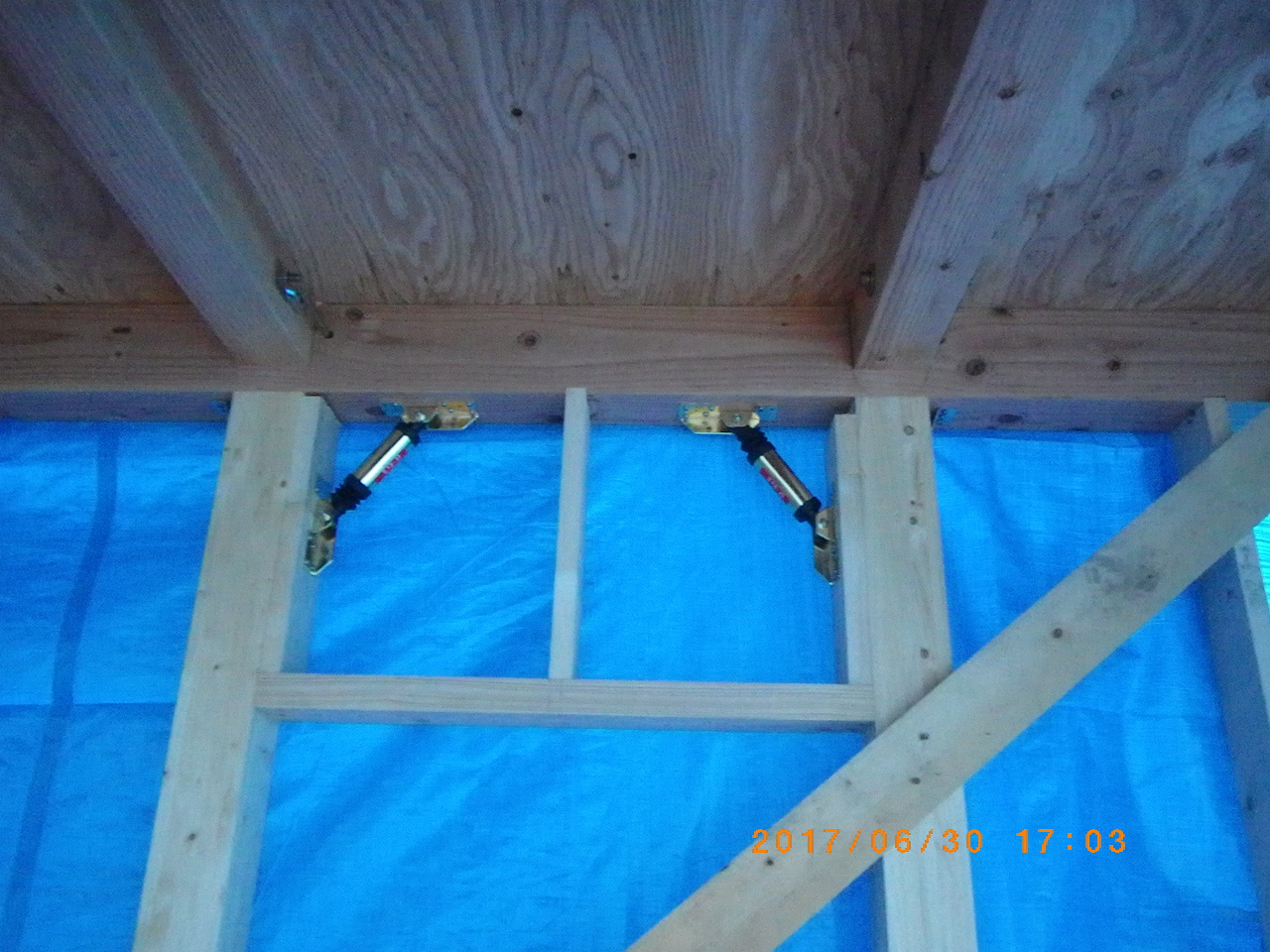 上棟が終了すると、建物の水平を決め筋交いや金物の設置となります。