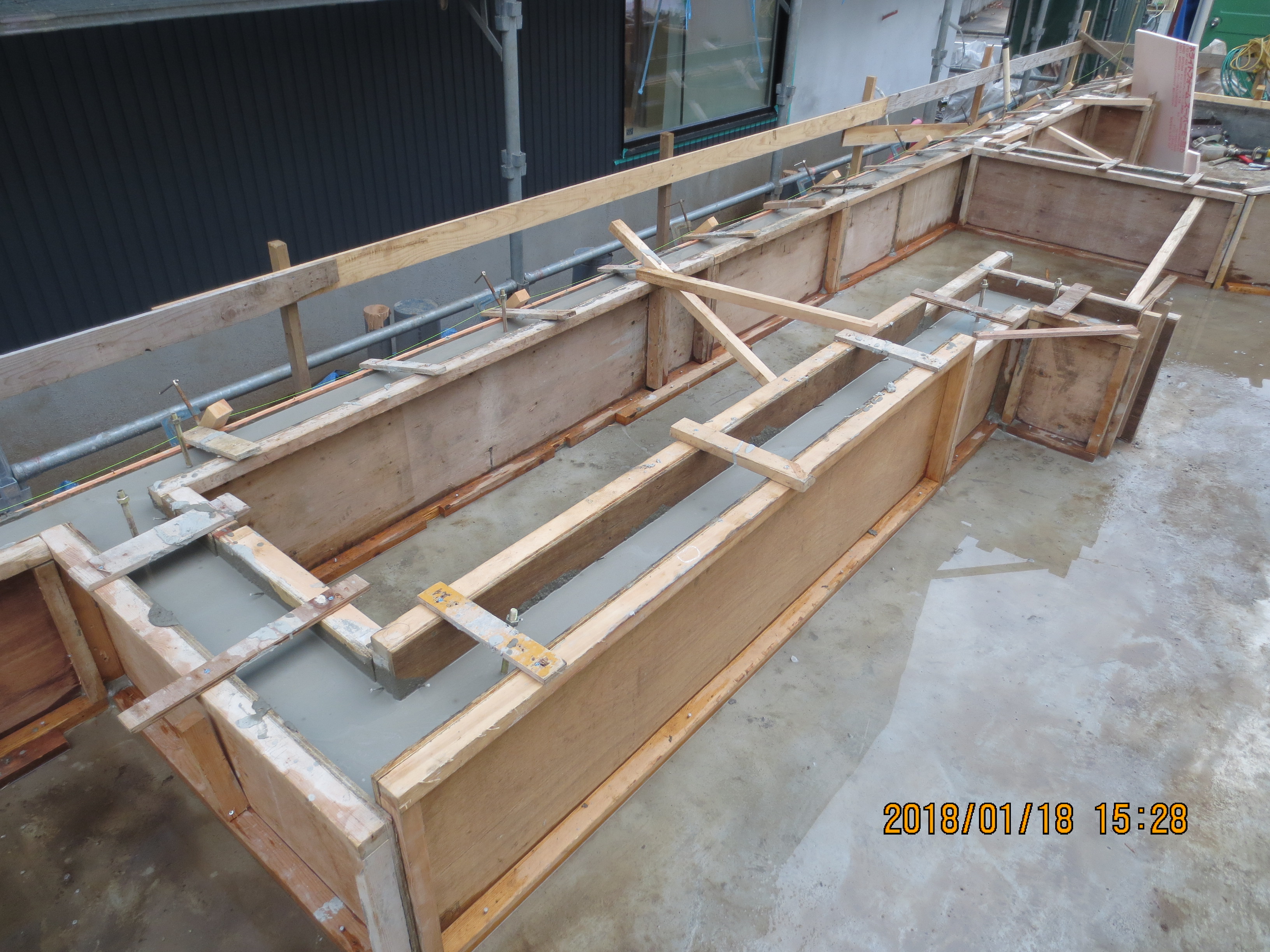 そしてこちらが型枠を取り除いた基礎になります。まさに、これからの”『漆喰の家』の礎(いしずえ)”となってくれることでしょう。この後図面を元に、上に気流パッキンという通気用の部材をはさんで土台を組み、柱を建て上棟(別名:棟上げetc.)となり、いよいよ建物の工事になります。