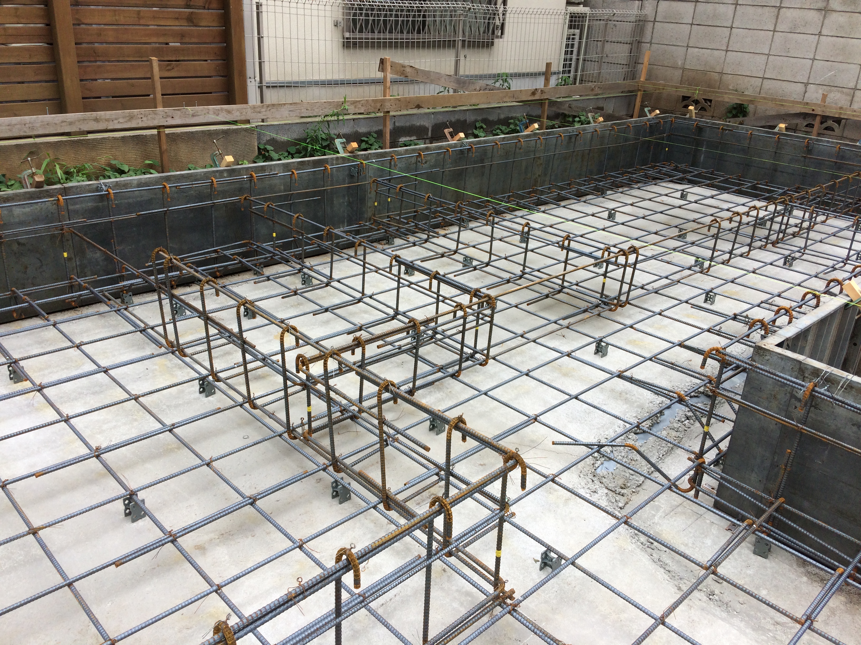 配筋が終了し基礎耐圧盤のコンクリート打設工事となります。