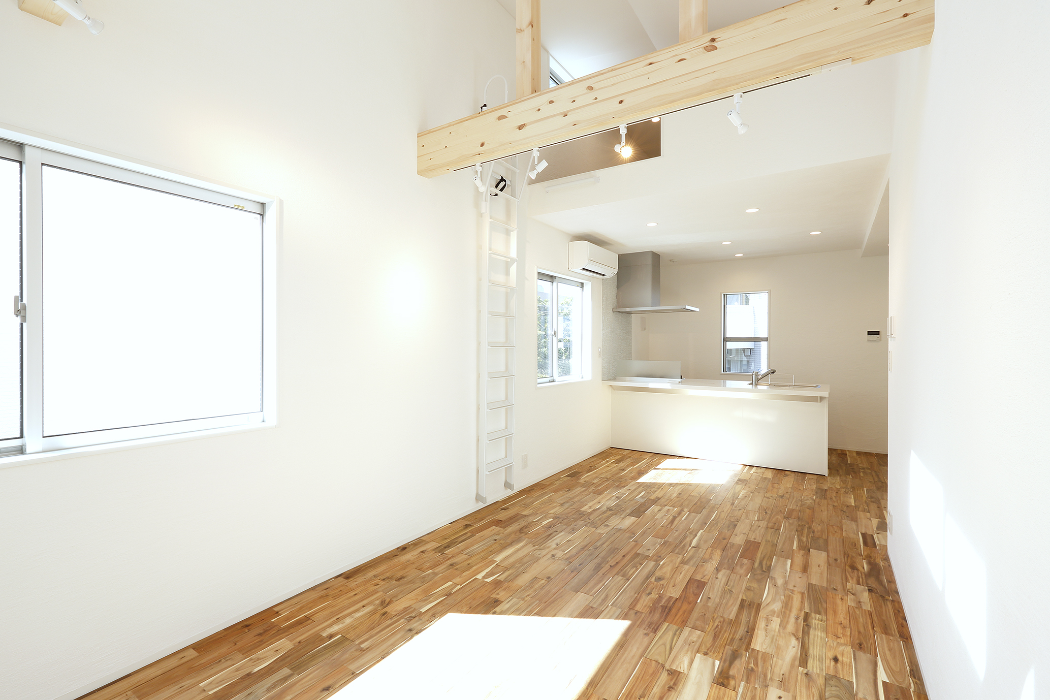 構造材を『表し』にしたリビングダイニングの吹き抜け