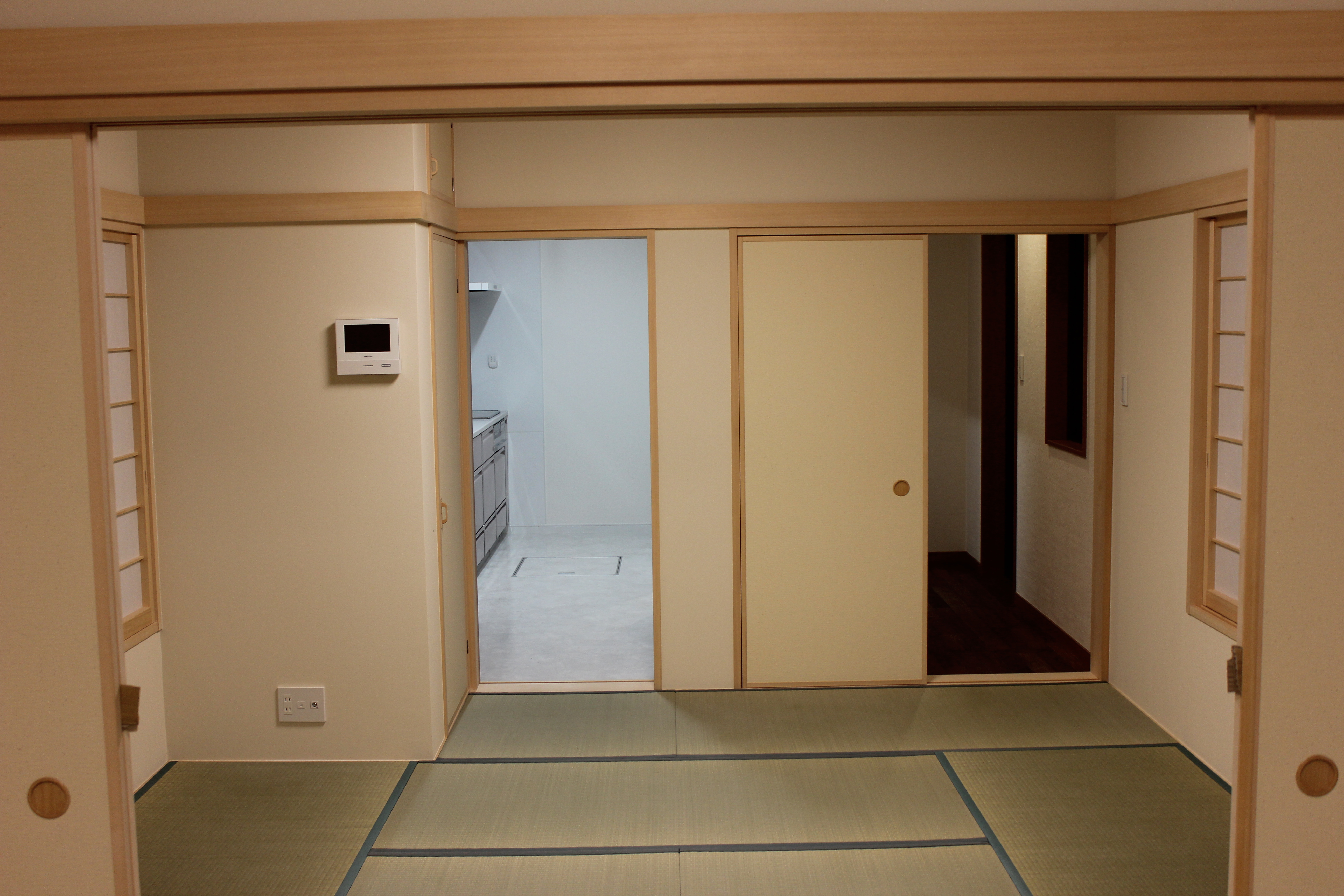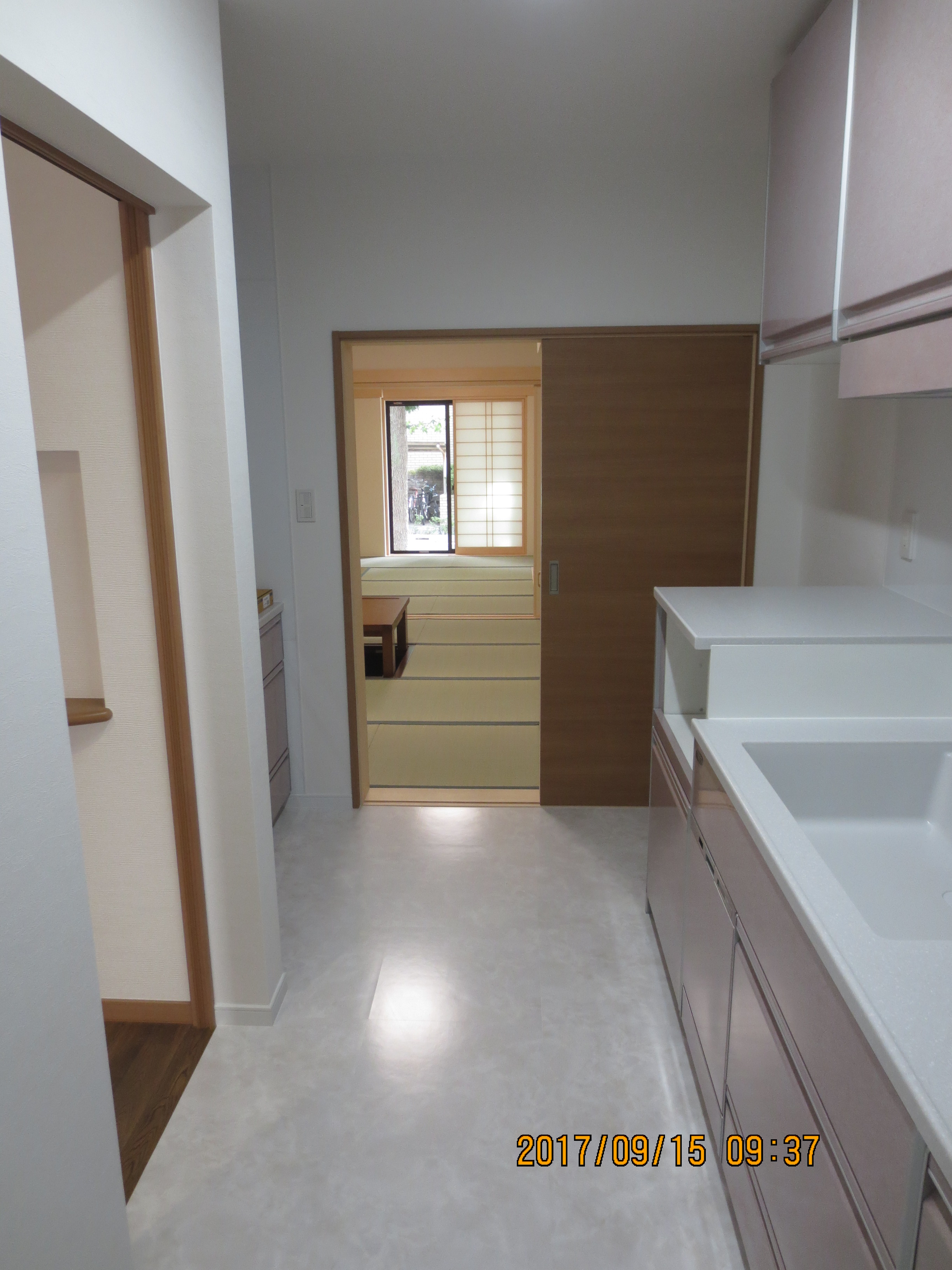 - 1階和室中間6帖よりキッチン・廊下を見る