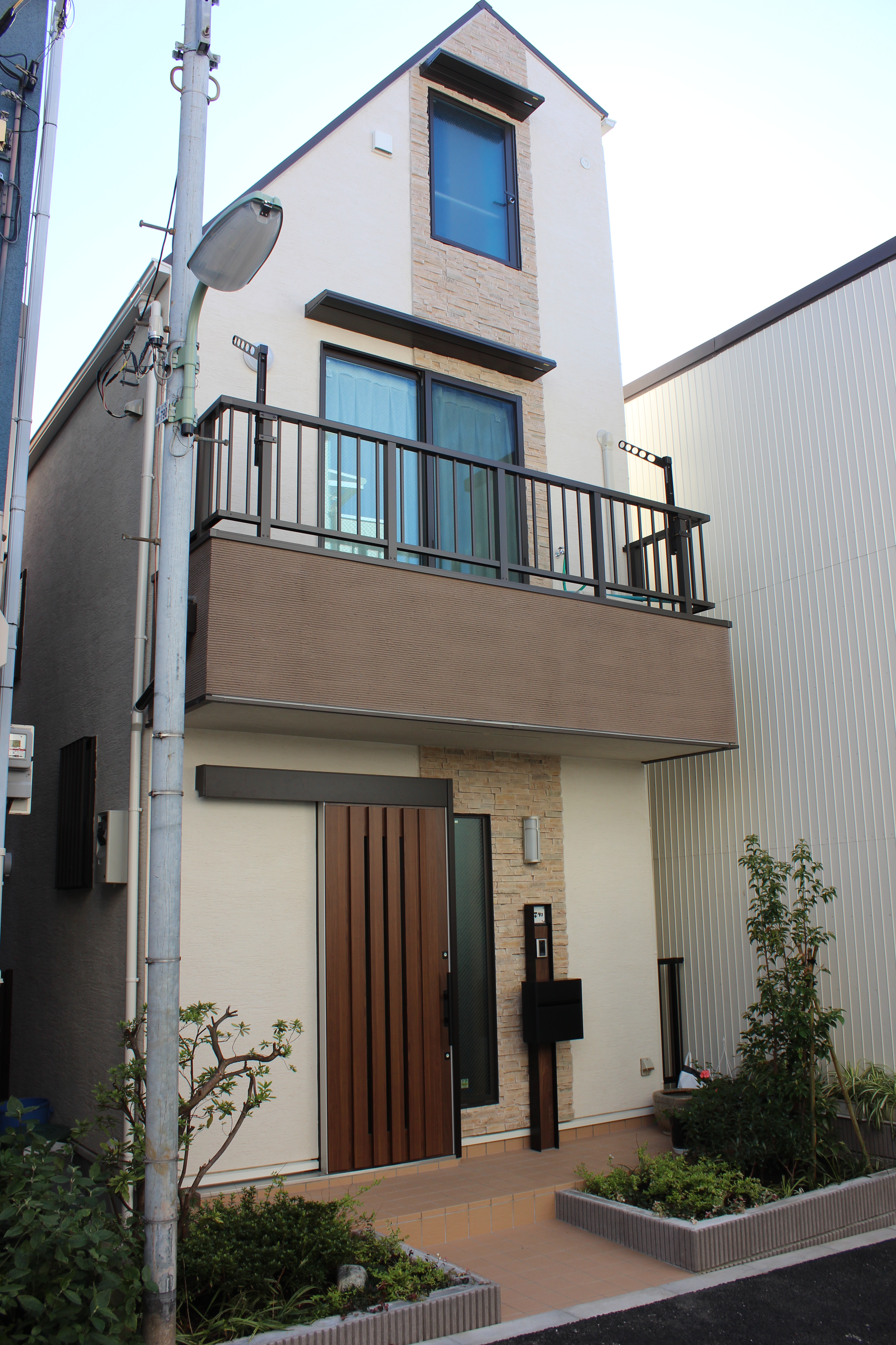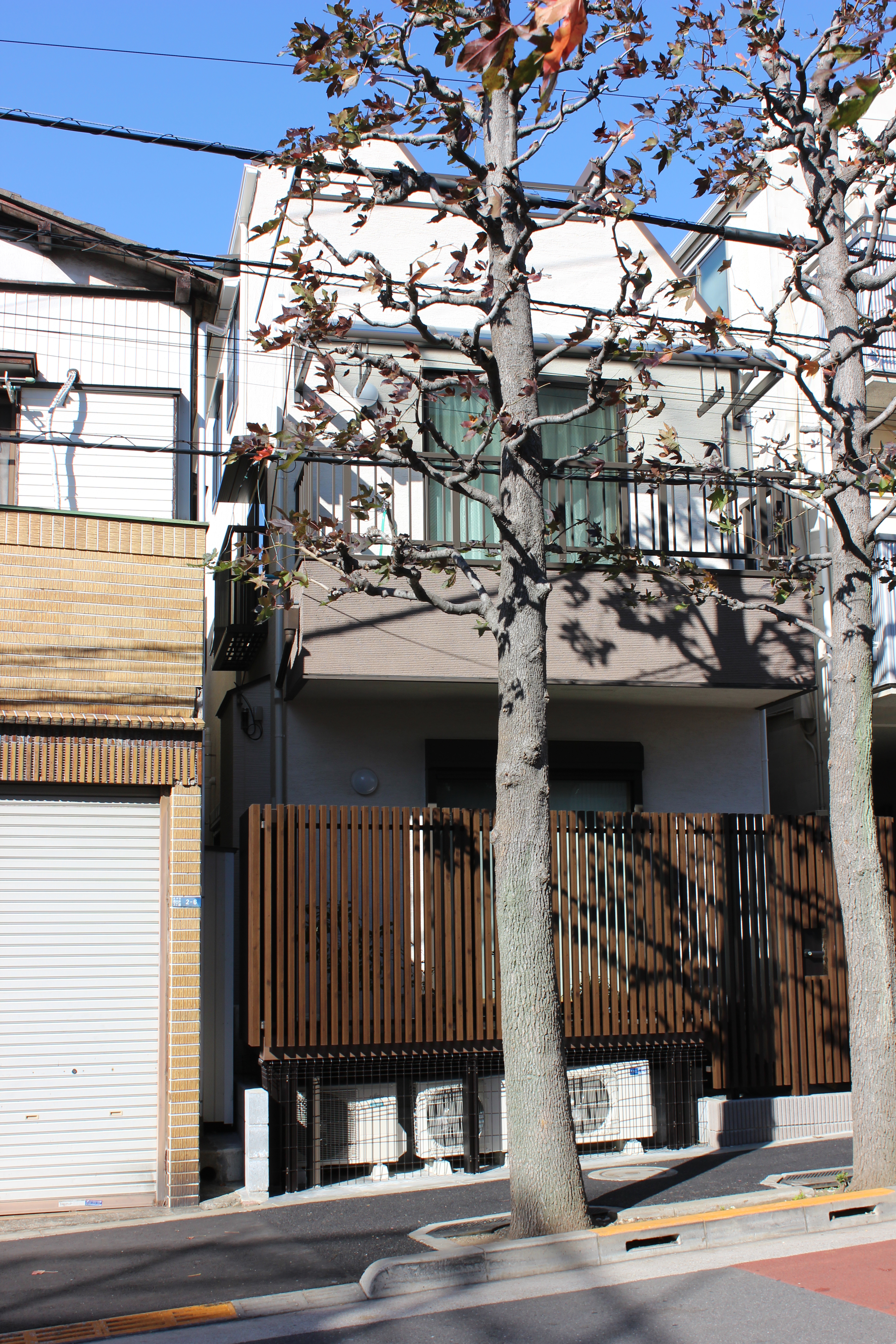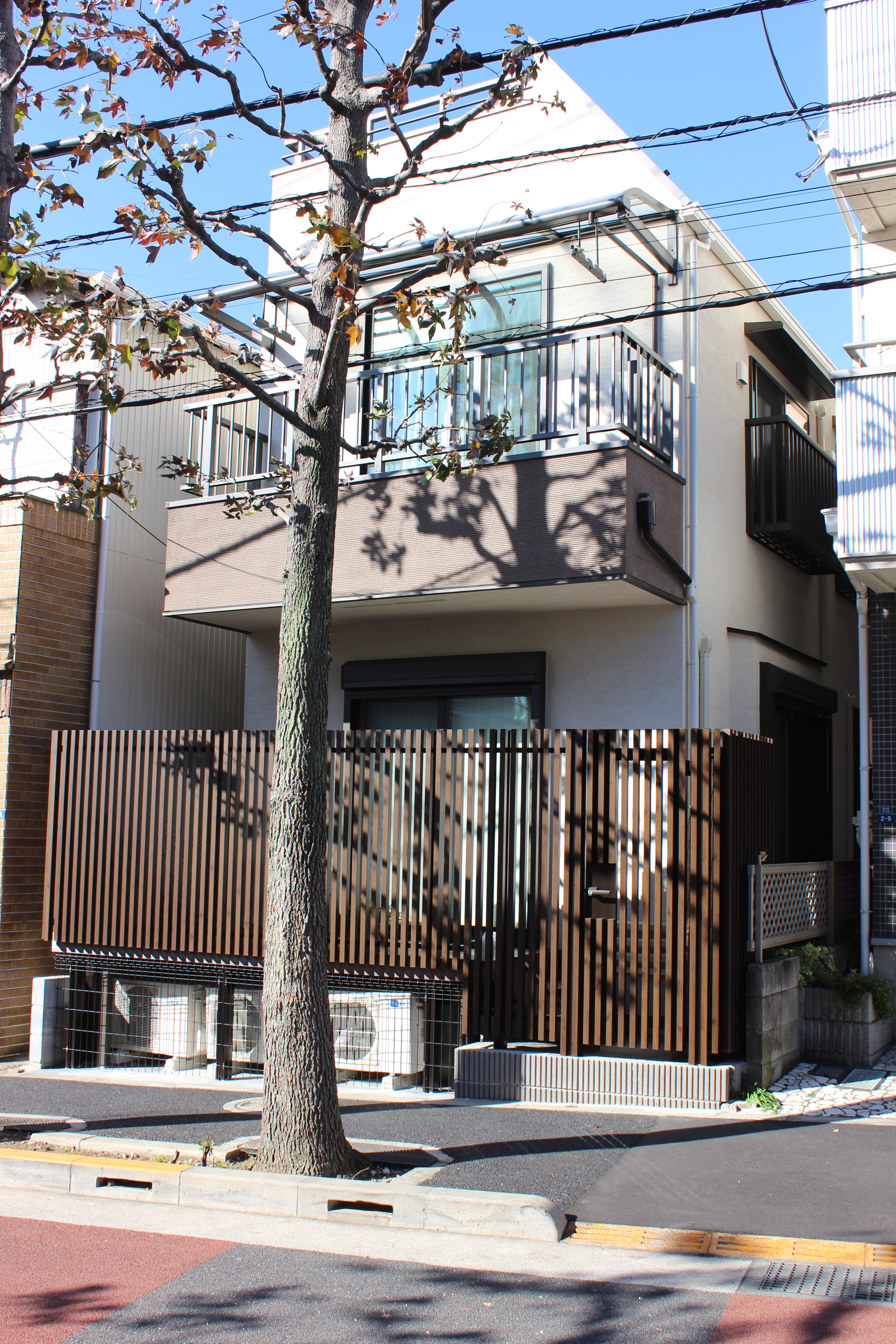 - 東側道路より木製デッキ及び目隠し用格子フェンス