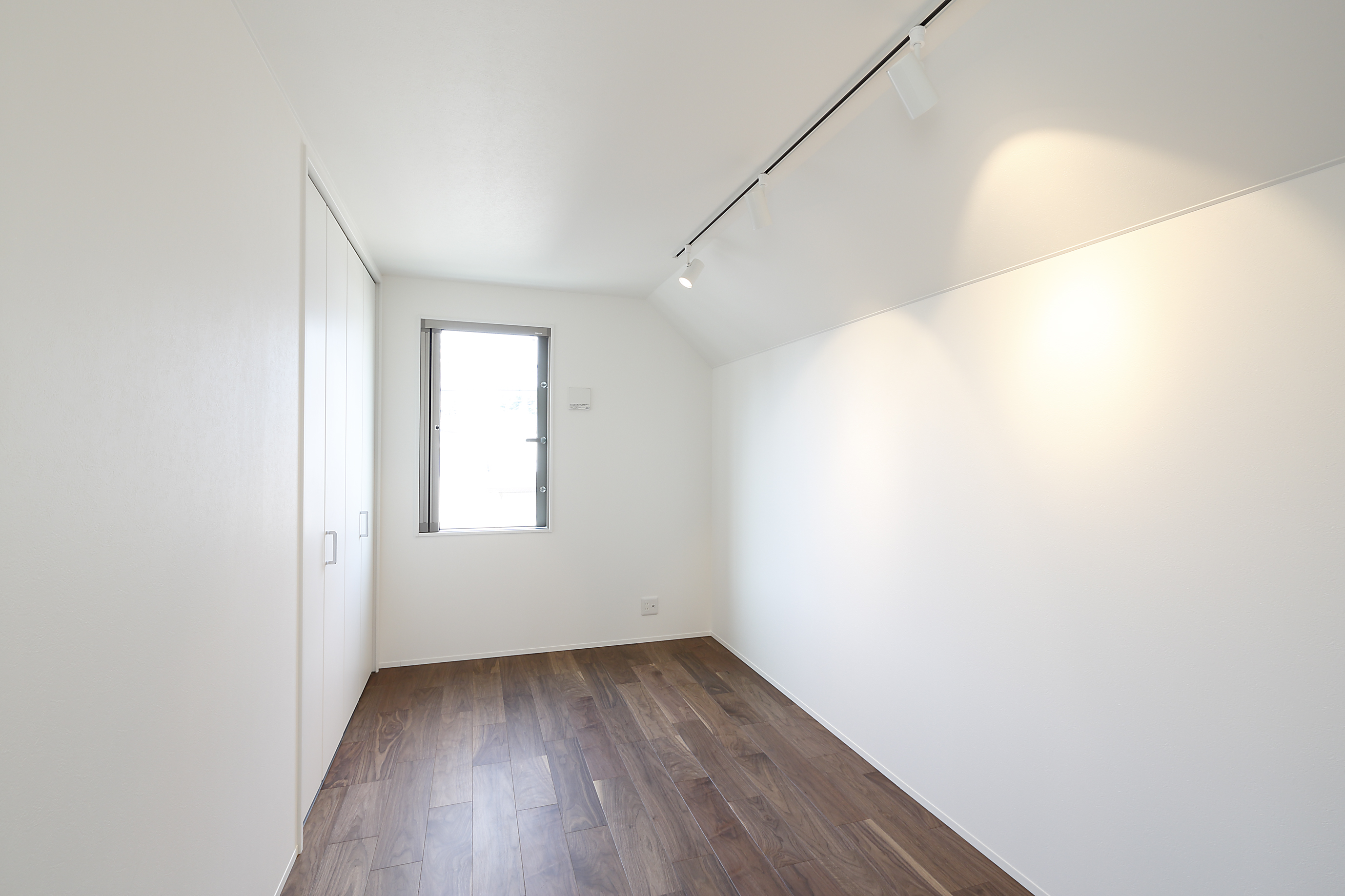 玄関は土間のような広い空間、1階奥に主寝室及びローゼット、ここでも高窓を多用することでプライナシーを確保しつつ光を取り入れ、2階はリビングダイニングキッチン、3階には洋間2室の3LDKというプランです。